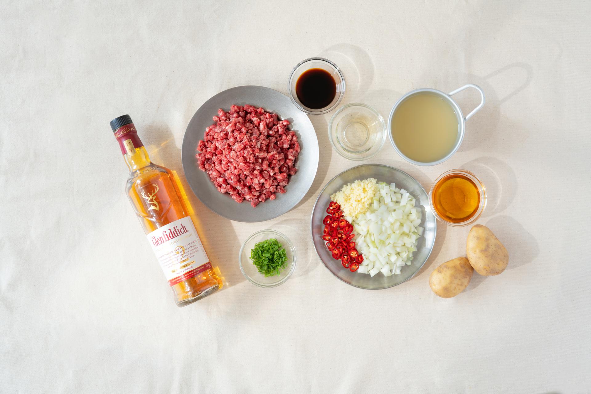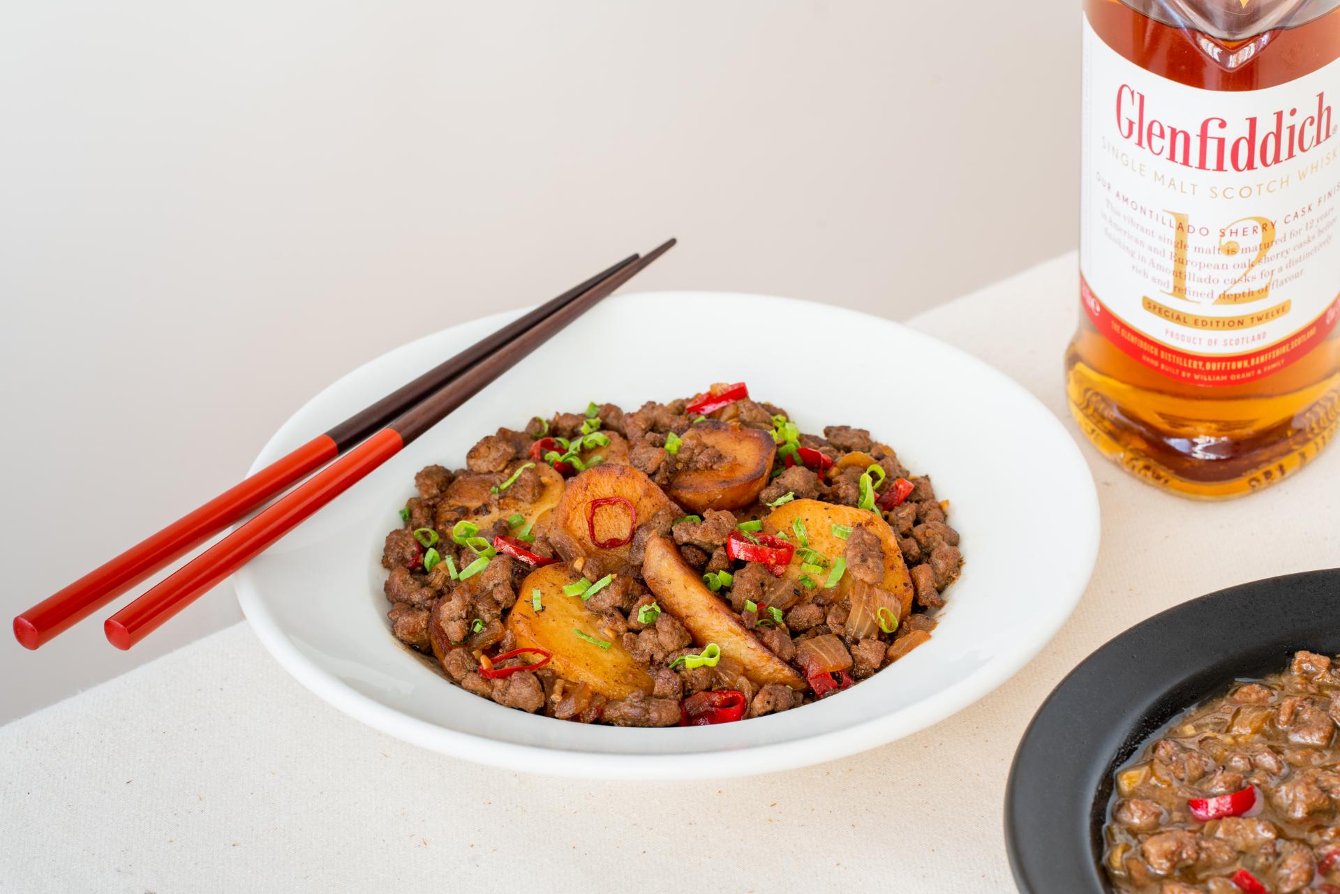 眾人紛紛留在家中防疫、減少外出的警戒時期,私藏酒窖推出以直播形式進行的線上料理工作坊「私藏計劃 mini」,並邀來不務正業男子 Ayo 擔任講師。本次 Ayo 設計了適合作為常備料理、鹹香開胃的「威士忌牛肉醬」,將有著深邃香氣的格蘭菲迪 12 年天使雪莉威士忌入菜,不僅為家常肉醬的風味增添層次感,也為餐餐自煮的飲食生活,注入令人再三回味的樂趣和亮點。