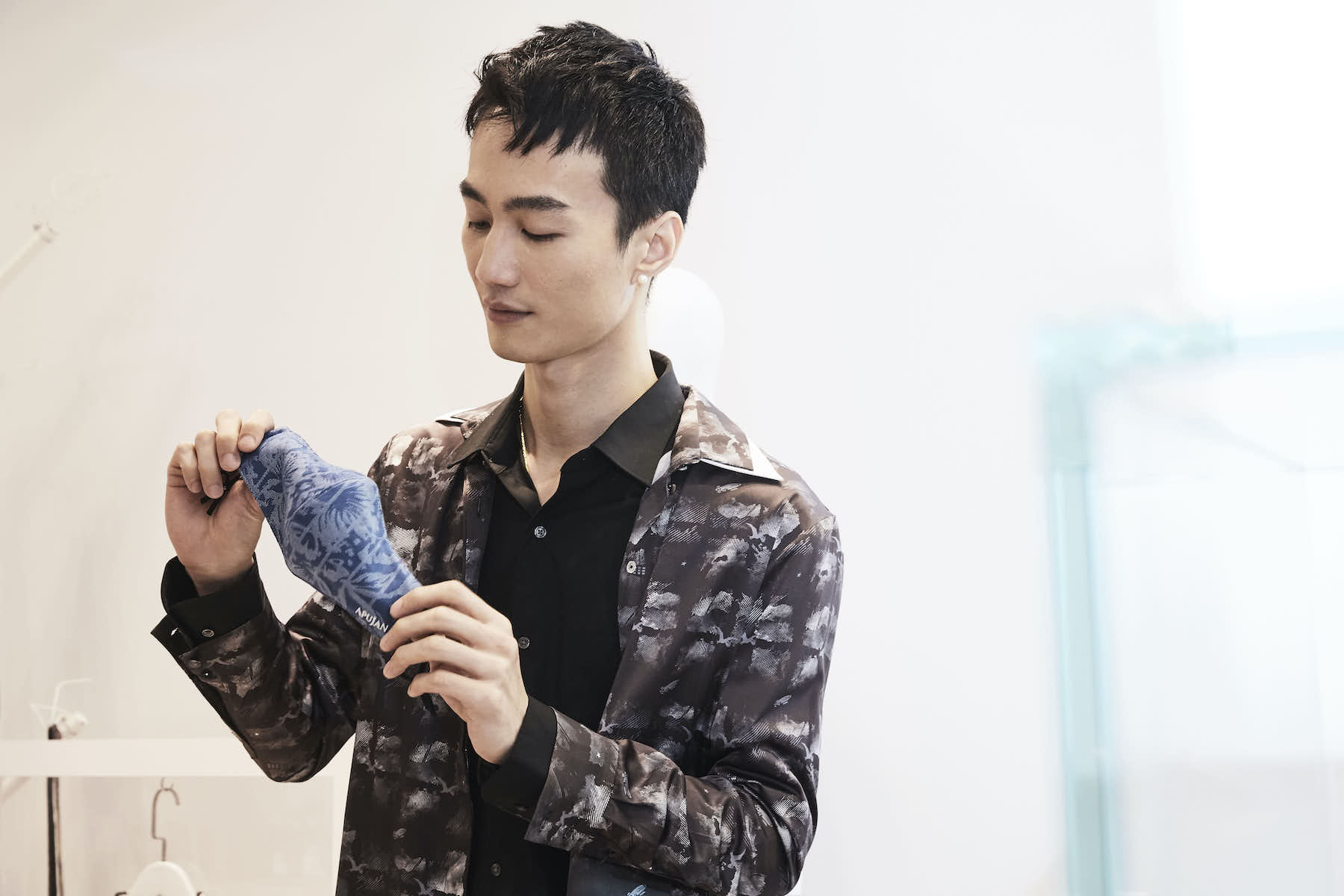 近年持續發展不分性別服裝配件的 APUJAN 首次邀請男性來擔任品牌大使,李英宏也以瀟灑、東方、飄逸來形容品牌服裝特色,覺得服裝不只是外表的呈現,更可以從細節處看到設計思維,進而聯想一個人的個性與想法。此次更以品牌的方格與齒輪印花襯衫搭配,展現專屬李英宏的東方台味。